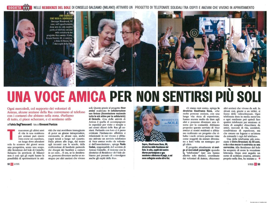 Siamo orgogliosi di annunciare che Famiglia Cristiana ha dedicato un articolo a Le Residenze del Sole! Un riconoscimento importante per il nostro impegno e la nostra missione.